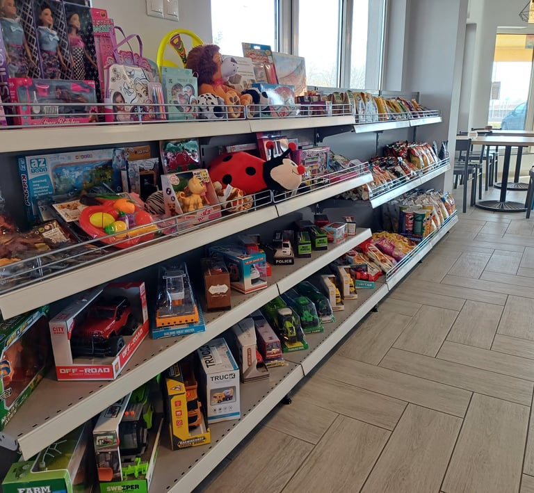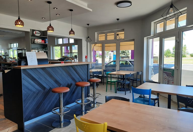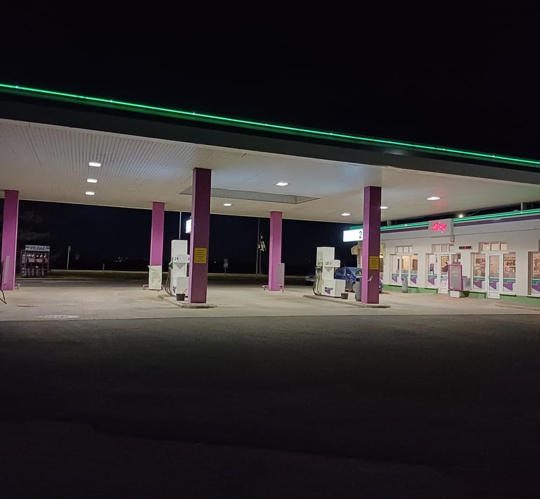 Benzinkúton teljesen felújított kényelmes bárral és nagy shoppal várja kedves vevőit! Igyon egy finom kávét, egyen egy szendvicset. Töltőállomásunkon 4 féle üzemanyag közül választhat, melyből 2 prémium adalékolt. A hosszú utazás alatt megpihenőknek, van zuhanyzási lehetőség, továbbá nagy parkolóval rendelkezünk. Várjuk a kedves betérőket!